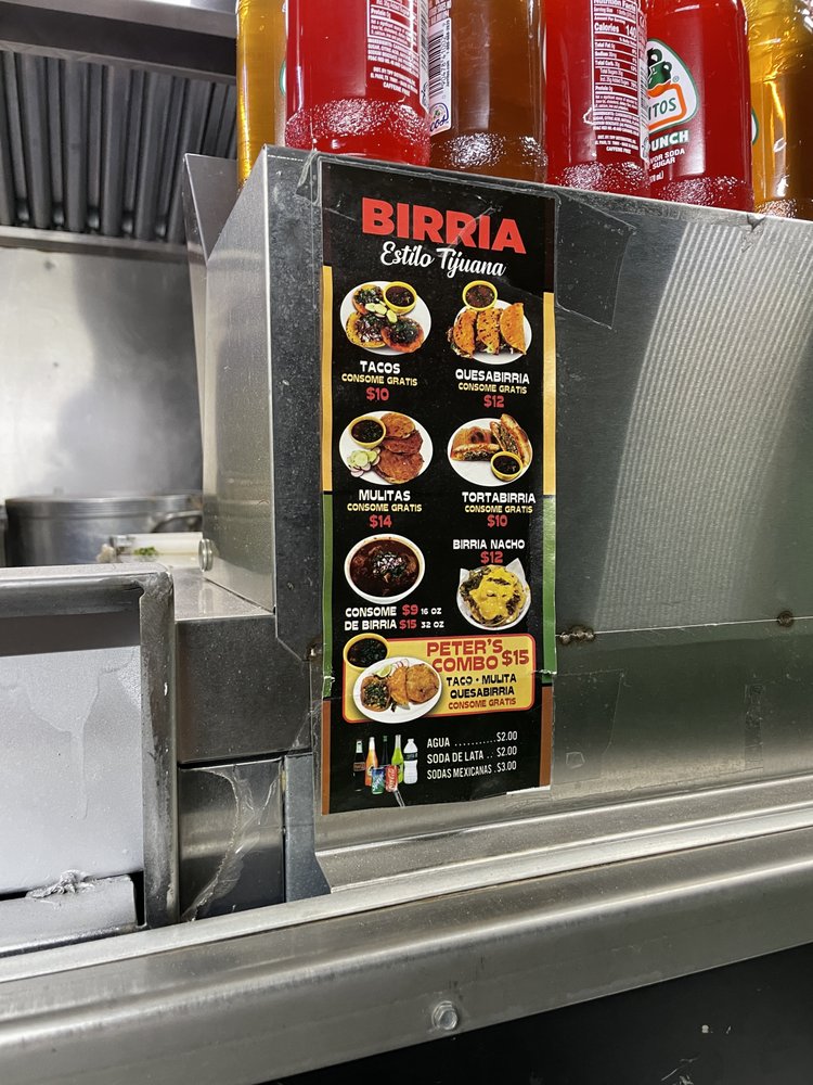 Introducing Peter’s Crunchy Red Tacos, a must-visit spot in Brooklyn, NY for taco lovers. This vibrant eatery offers a unique selection of tacos with a crunchy red shell that will tantalize your taste buds. Standout items include the flavorful Birria Estilo Tijuana, featuring Birria Nachos with melted American cheese, onions, cilantro, and free consome – a true delight for your palate. The Peter's Combo Taco, Mulita, and Quesabirria are also a must-try, each served with complimentary consome and a free soda. The menu includes a variety of refreshing drinks like Jarito Mexican glass soda, perfect for washing down the delicious flavors of the tacos. With convenient options for delivery, takeout, and outdoor seating, Peter’s Crunchy Red Tacos is a gem in the heart of Brooklyn.